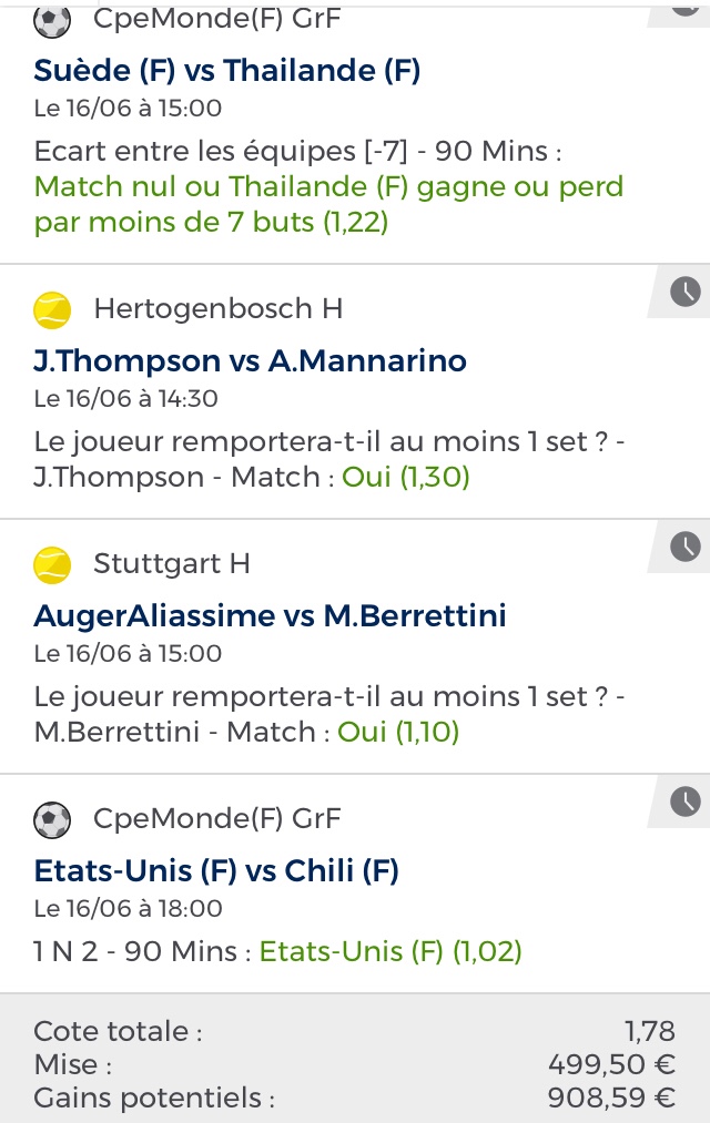 Voici le prono du jour combinant du foot féminin et les deux finales de tennis homme aujourd’hui!